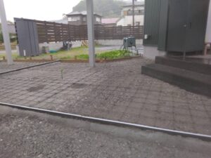 ひび割れ防止のため鉄筋メッシュを入れ強度を確保します。