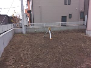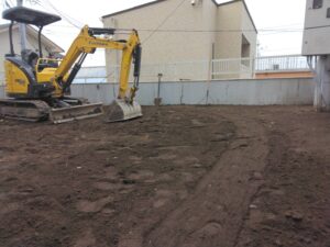 不要な土や砂利を撤去し、仕上がり高さに合わせて掘り下げます。